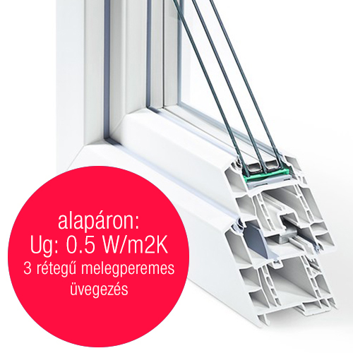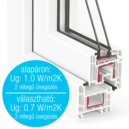 - Hőszigetelés: Uf = 0,86 W/m²K-ig